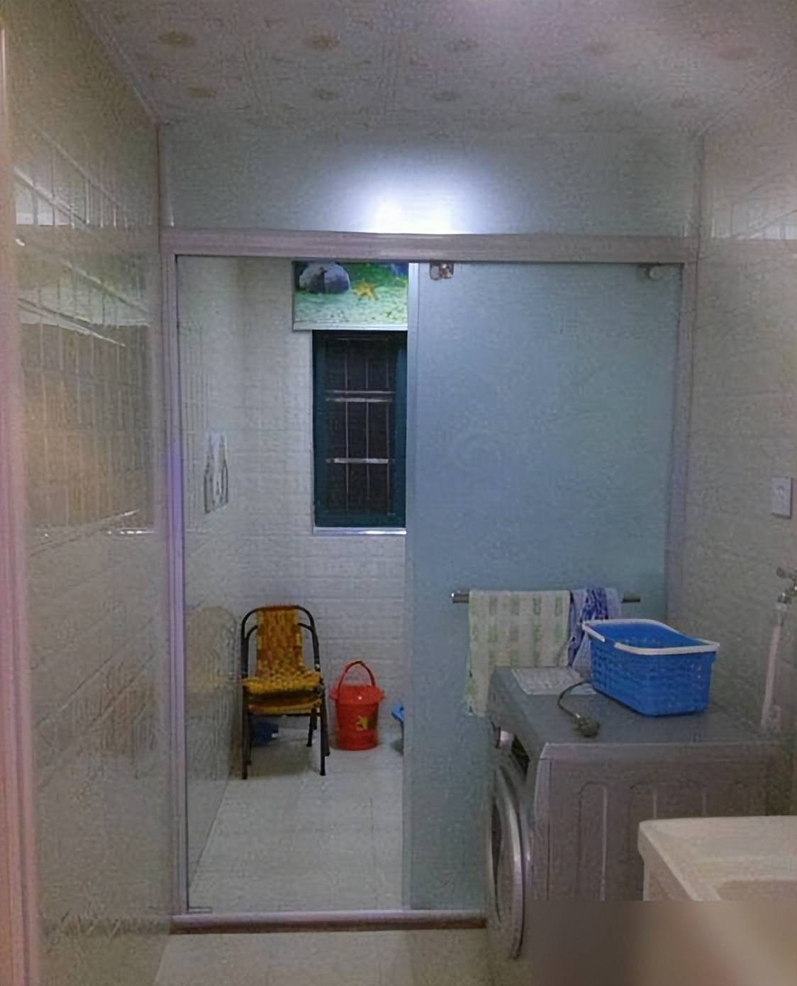 卫生间我安装了玻璃推拉门,将洗手池和洗衣机放置在外面,马桶和淋浴置于里面——干湿分离至关重要!